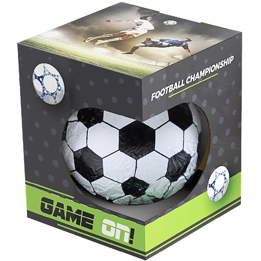 Chokoladefodbold med folie i emballage med eget tryk. Hele emballagen designes efter dine ønsker. Et hit for alle fodboldfans. Kontakt os for information om de chokoladesmag der er til rådighed.