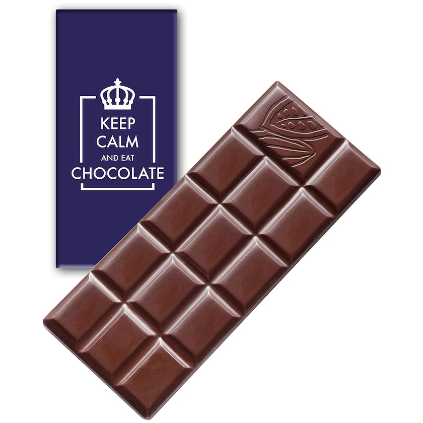 50 gram chokolade i højeste kvalitet. Vælg mellem flere typer. Dette er chokolade til dig som kun vil have det bedste. Emballagen digitaltrykkes i CMYK. Chokoladen er vakuumpakket for maksimal fødevarehygiejne.