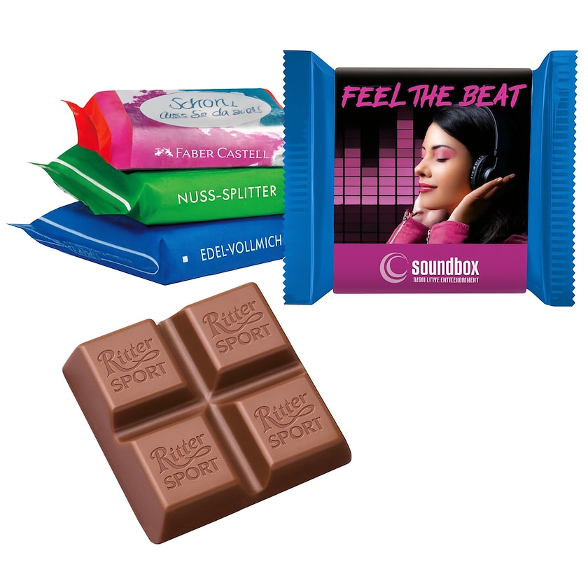 Klassisk Ritter Sport Mini med sit eget banderole i digitaltryk.