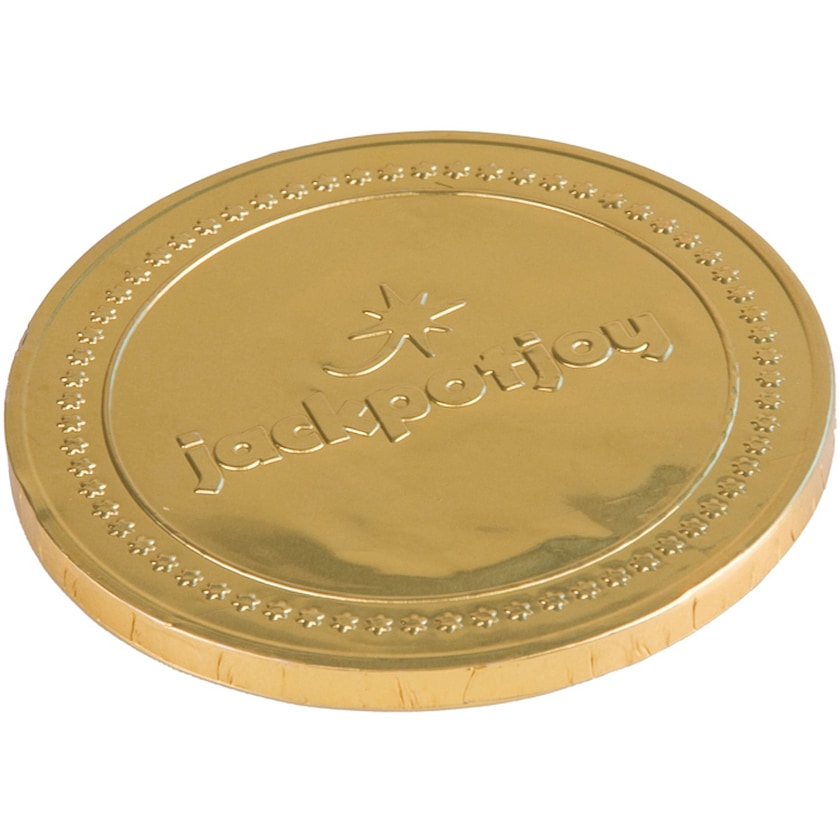 Lille chokolademønt med præget logo. Mønten har guldfolie og er fyldt med lækker mælkechokolade. Prægningen sker som standard på den ene side. Ønskes prægning på begge sider, tilkommer der et ekstra opstartsgebyr. Sælges kun i enheder på 6000 stk.