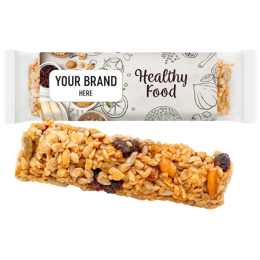 Energibar fuld af lækker energi! Granville er håndlavet og helt fri for konverseringsmidler. Vælg mellem flere forskellige smagsvarianter. Leveres i transparent emballage med paphylster med dit logo.