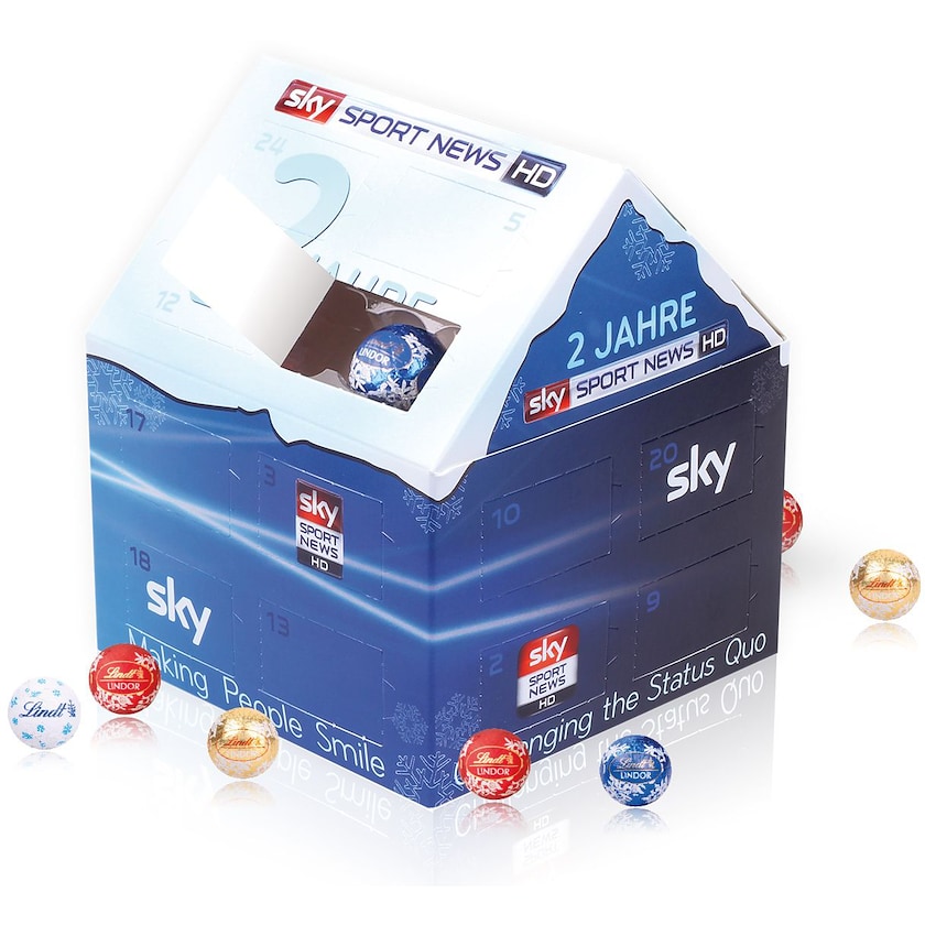 3D-julekalender formet som et hus fyldt med chokolade fra Lindt. Download skabelonen og design din egen unikke julekalender. Julekalenderen er fyldt med 24 stk. Lindt Minis i blandet smag.