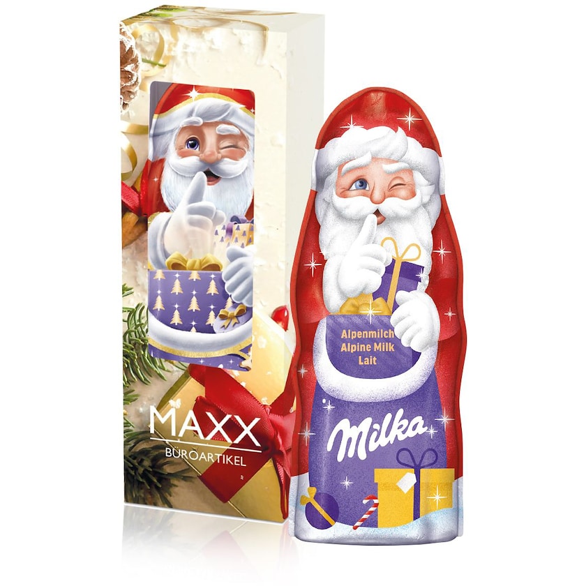 90 grams chokoladejulemanden med logo fra Milka. Chokoladenissen leveres i en papæske som trykkes efter dine ønsker. En perfekt julegave til medarbejdere og kunder!