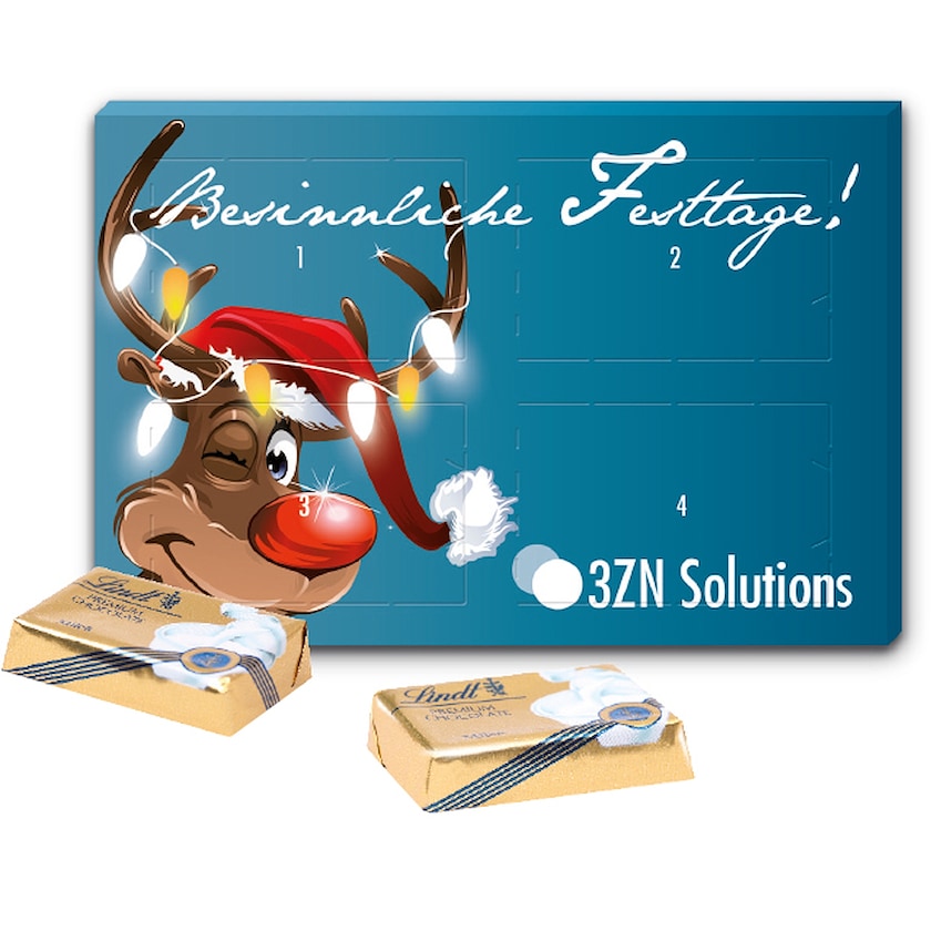 Superlille julekalender fyldt med chokolade fra Lindt. Julekalderen har fire låger, en for hver adventssøndag. Download skabelonen og skab dit eget design.