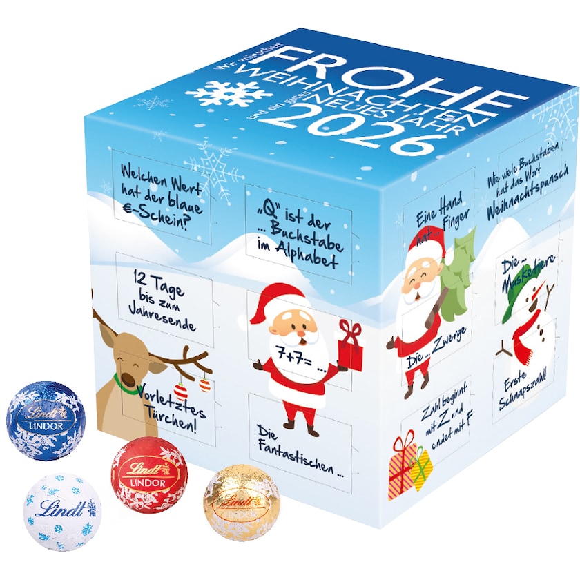 Terningsformet julekalender lavet udelukkende af papir. Fyldt med lækkert Lindt Lindor. Indeholder ingen plastik og er derfor et godt miljøvalg. Papiret kommer fra FSC-certificeret skove.
