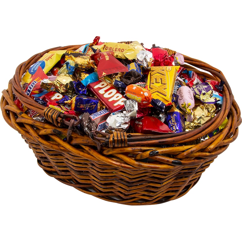 Julekurv fyldt med 2500 gram indpakket højkvalitets slik. Kurven er fyldt med velkendt slik såsom Daim, Kex-chokolade, Twix, Bounty, Dumle, Geisha, Plopp og Marianne. Alle kurve leveres indpakket i cellofan rød sløjfe. Mod et ekstra gebyr kan kurvene endda forsynes med et kort med dit logo på. En perfekt julegave til dine kunder!