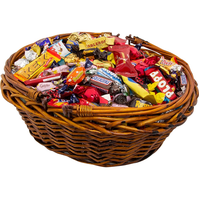 Julekurv fyldt med 3500 gram indpakket højkvalitets slik. Kurven er fyldt med velkendt slik såsom Daim, Kex-chokolade, Twix, Bounty, Dumle, Geisha, Plopp og Marianne. Alle kurve leveres indpakket i cellofan rød sløjfe. Mod et ekstra gebyr kan kurvene endda forsynes med et kort med dit logo på.