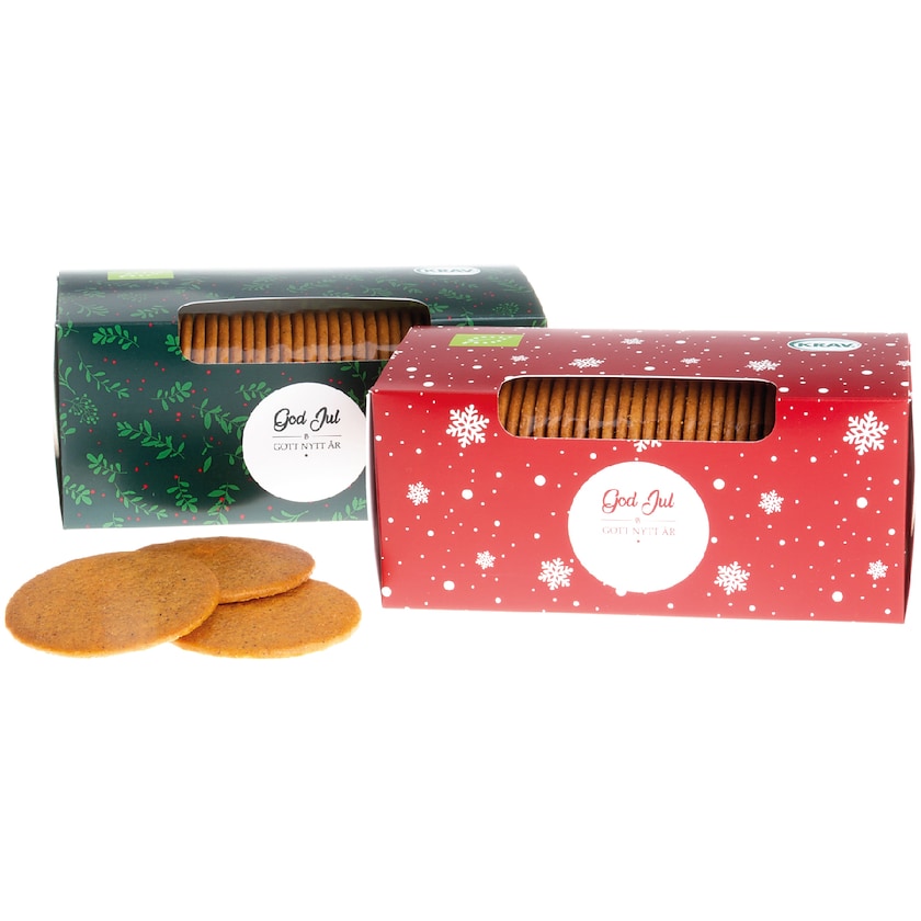Økologiske peberkager i karton med eget logo. Peberkagerne kommer fra Nyåkers og er bagt ifølge den originale opskrift fra 1952. Hele papæsken trykkes efter dine ønsker.