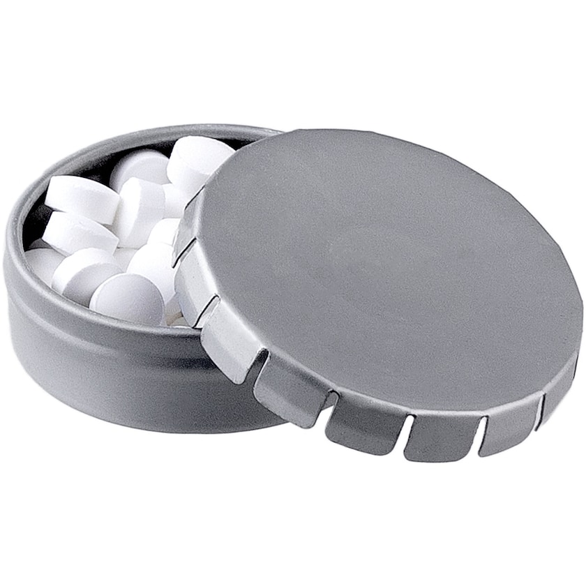 Lille clic-clac-dåse fyldt med 5 gram mintpastiller. Vælg mellem to farver. Når man trykker på dåsens låg så åbnes æsken. En klassiker blandt reklameslik.
