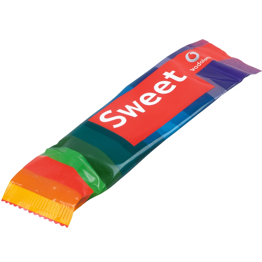 13 grams slikkepind fremstillet af Fairtrade-certificeret og økologisk sukker. Slikkepindens farve er fremstillet af naturlige ingredienser. Hele flowpack-emballagen trykkes efter egne ønskemål. Minimumsbestilling per smag er 6000 stk. En Fairtrade-slikkepind med god plads til reklame!