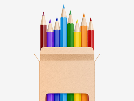 Farveblyanter er altid trykt på emballagen. Der har du god plads til dit tryk og der bliver dit logo bedst eksponeret for brugeren.