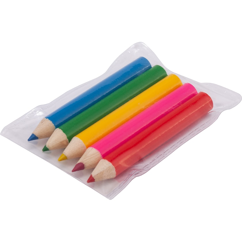 Lille sæt med 5 stk. farveblyanter. Farveblyanter kommer i en transparent opbevarings foderal som trykket med digitaltryk.
