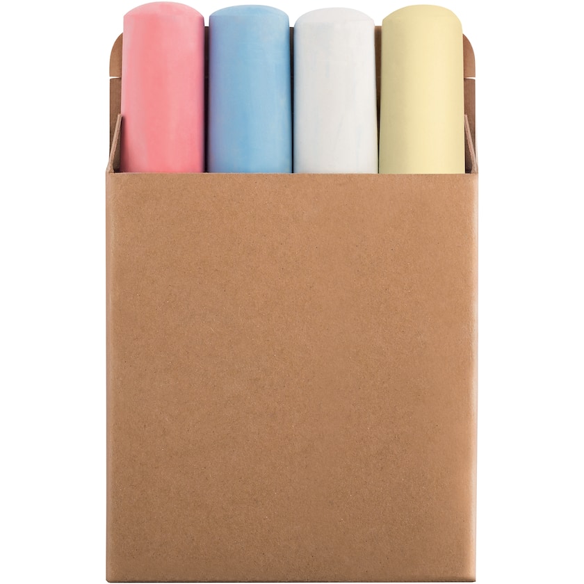 Sæt med 4 stk. farvekridt perfekt til at tegne på asfalt. Farvekridtene leveres i en naturfarvet papæske. En prisvenlig reklameartikel der lader børnene slippe sin kreativitet løs!