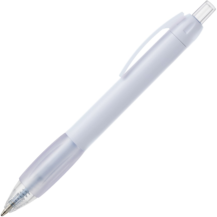Matfarvet kuglepen med clips med meget stor trykflade. Pennen har et stort bekvemt greb i transparent materiale. En karakteristisk kuglepen med stor trykflade!