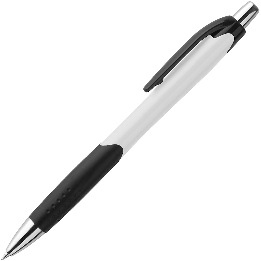 Reklamekuglepen med stort, komfortabelt gummigreb. Kuglepennen har forkromede detaljer og fås i flere lyse farver.
