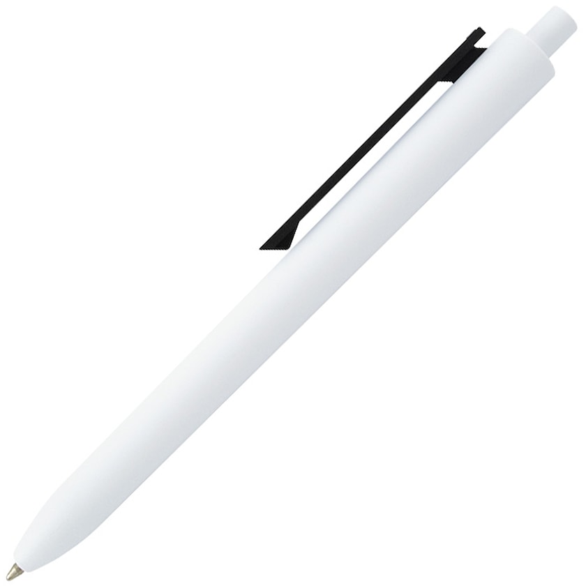 Hvid kuglepen med farvet klips. Der kan trykkes på både pennekroppen. Vælg mellem blåt eller sort blæk.