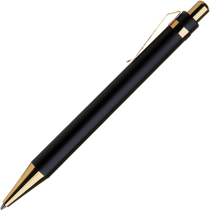 Luksuriøs reklamekuglepen med forgyldte metaldetaljer.