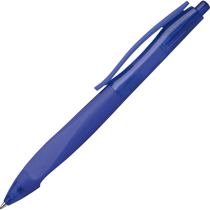 Højkvalitativ reklamekuglepen med unikt ergonomisk greb. Pennekroppen er transparent og grebet gummibelagt. Vælg mellem fire forskellige blækfarver.