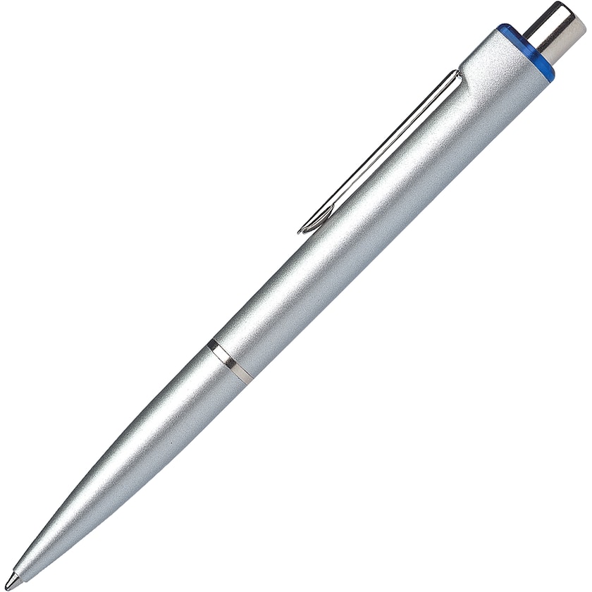 Elegant reklamekuglepen med sølvfarvet pennekrop. Clips, ring og knap er af metal. Kuglepennen er forsynet med en førsteklasses blækpatron Schneider 774M.