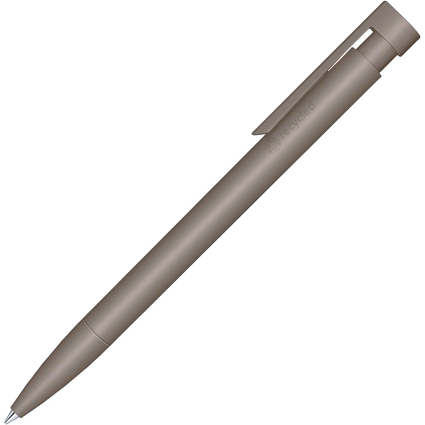 Mat farvet reklamekuglepen af genbrugsplast. Kuglepennen har en sort blækpatron som kan skrive hele 5000 meter. En kuglepen af bedste kvalitet som er et godt miljøvalg. Vælg mellem blå eller sort blæk.
