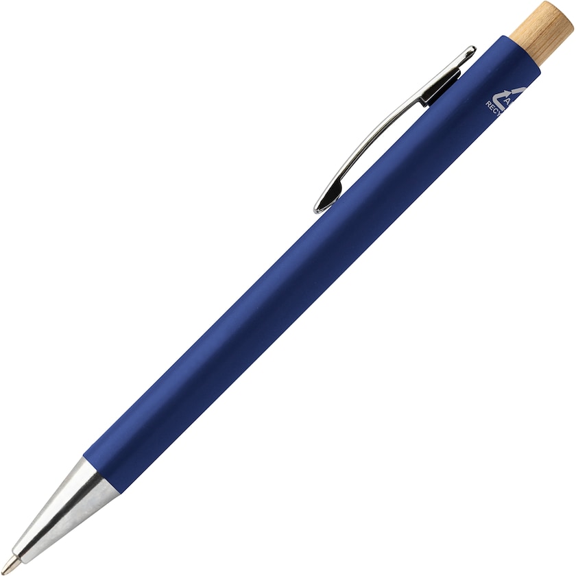 Kuglepen af genanvendt ABS og bambus. Pennespidsen og clipsen er lavet af metal.