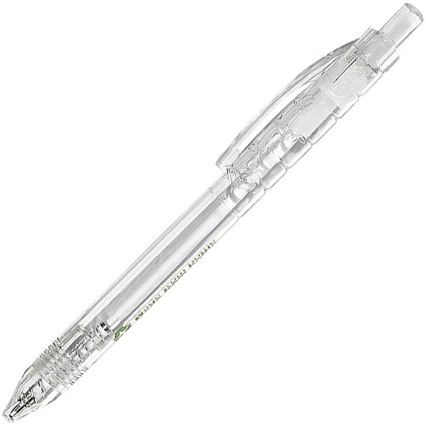 Transparent kuglepen fremstillet af genanvendte PET-flasker.