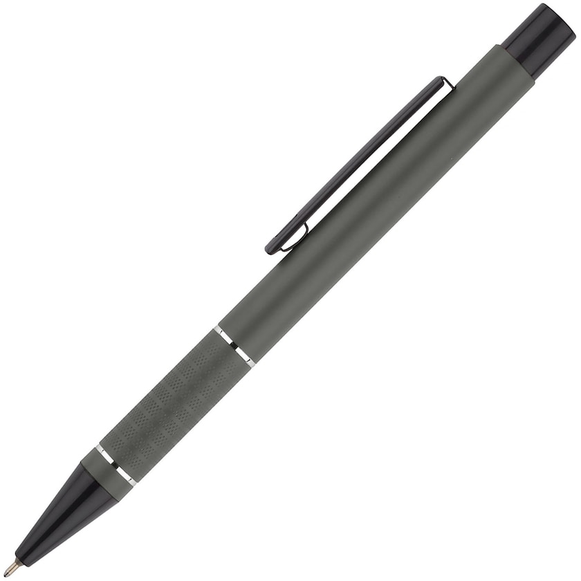 Eksklusiv reklamekuglepen af aluminium. Grebet har en ru overflade, som gør at du får godt fat i pennen når du skriver. Blækpatronen har blåt blæk og er meget behagelig at skrive med.