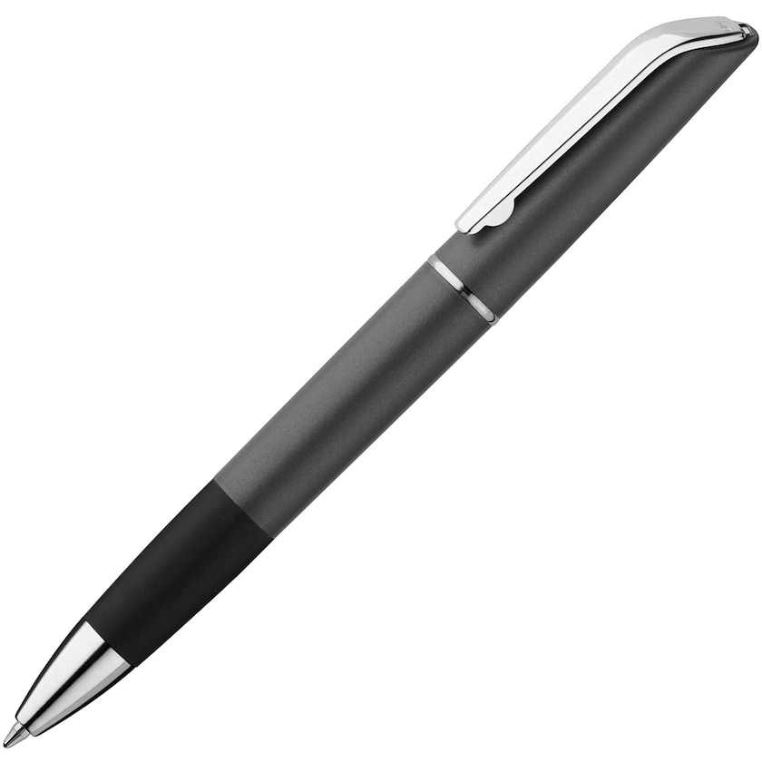 Metallicfarvet kuglepen med greb og flere forkromede detaljer.