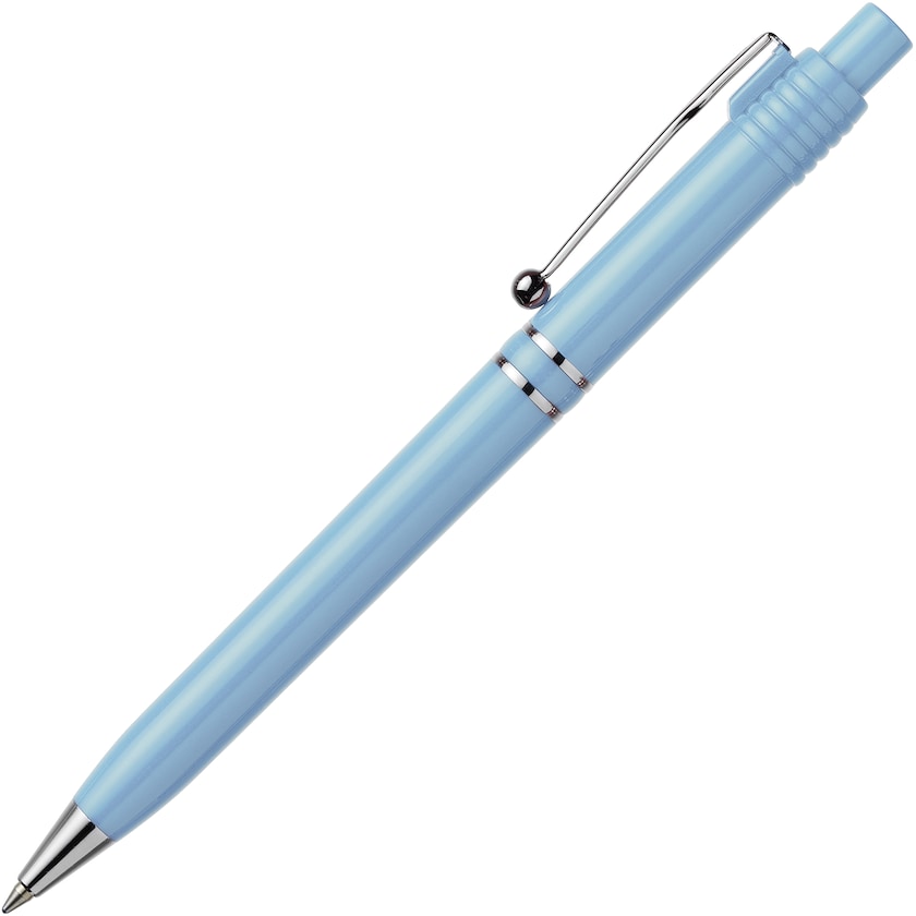Elegant reklamekuglepen med en lidt anderledes clips. Clips, spids og ringe er lavet af forkromet metal. Blækket er dokumentsikkert i henhold til ISO 12757-2. Kuglepennen er fremstillet i Europa.