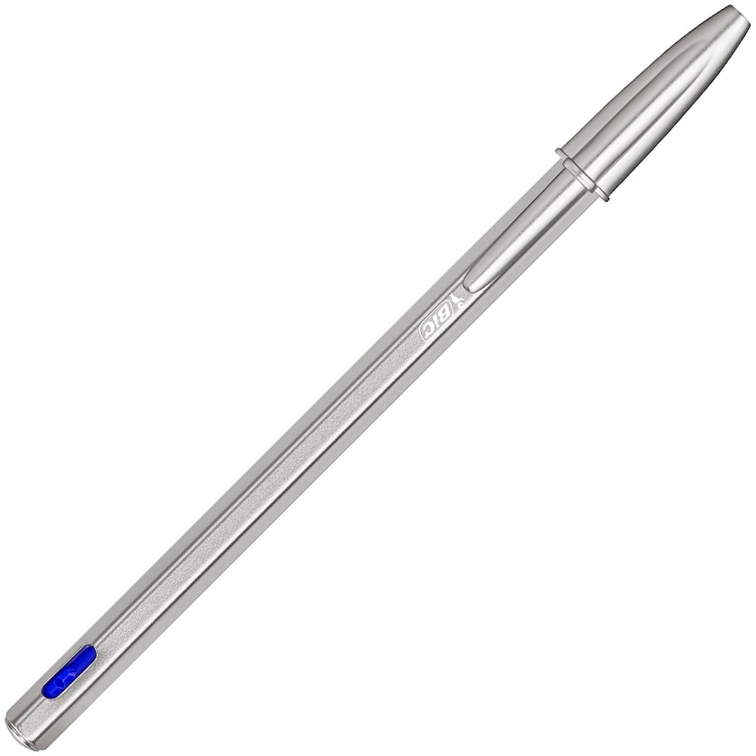Elegant metalkuglepen fra franske Bic. Pennekroppen er fremstillet af metal og låget er lavet af op til 96% genbrugsplast. Vælg mellem blå eller sort blæk. Leveres individuelt pakket i gaveæske med mønster. Mærkning laves med lasergravering.