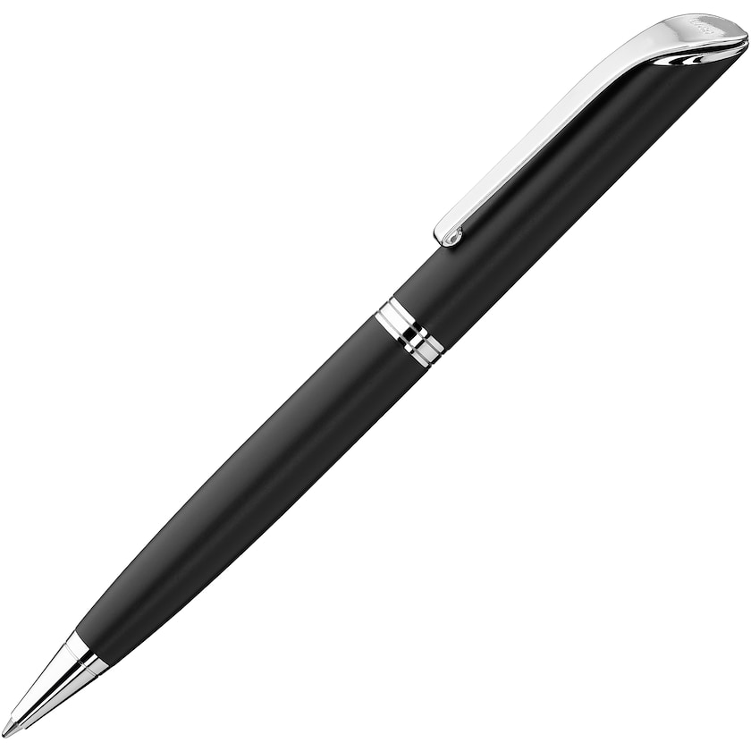 Drejekuglepen i metal med mat overflade. Denne eksklusive kuglepen er designet med blanke kromdetaljer. Vælg mellem tryk eller lasergravering.