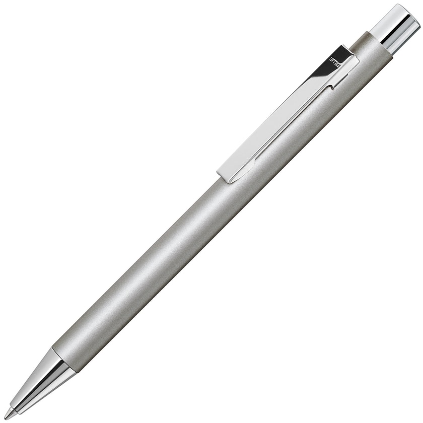 Metalkuglepen med blåt blæk. Stockholm Color kan fås i alle regnbuens farver. Kuglepennens forkromede dele skaber en flot kontrast til pennekroppens matte overflade.
