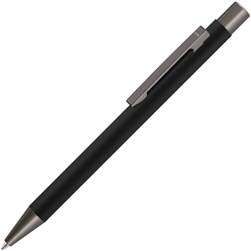En stilren metalkuglepen fra Stockholm-serien. Pennekroppen har en såkaldt "soft touch"-overflade, og kan fås i mange forskellige farver. Trykknappen, spidsen og clipsen er i en flot mørkegrå metallicfarve.