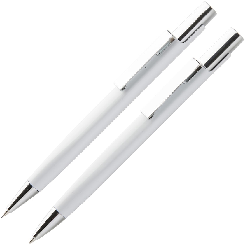 Pennesæt med kuglepen og stiftsblyant i sort gaveæske. Pennene er fremstillet af aluminium. Kuglepennen har sort blik og stiftsblyanten en 0,7 mm stift. Mærkning sker enten med 1-farvestryk eller lasergravering. Mærkningsprisen angiver mærkning på en af pennene.