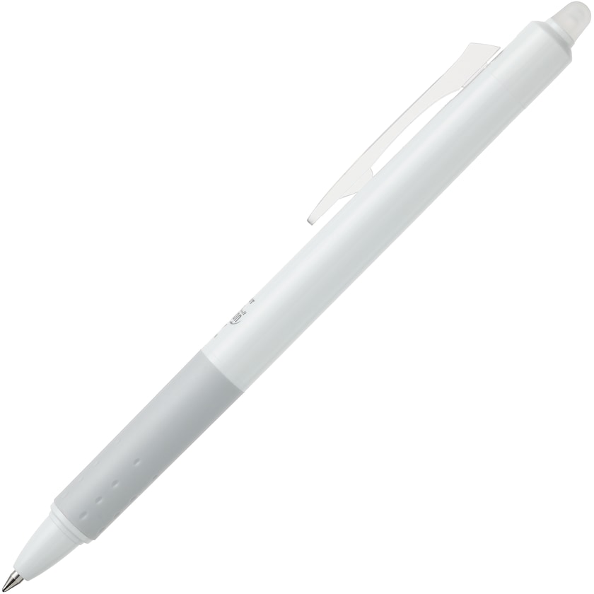 Kuglepen med udviskelig skrift. Pilot Frixion Clicker White skriver, visker ud og skriver igen og igen. Pennen har en speciel teknik som bygger på friktion og funktionen er uudslidelig.