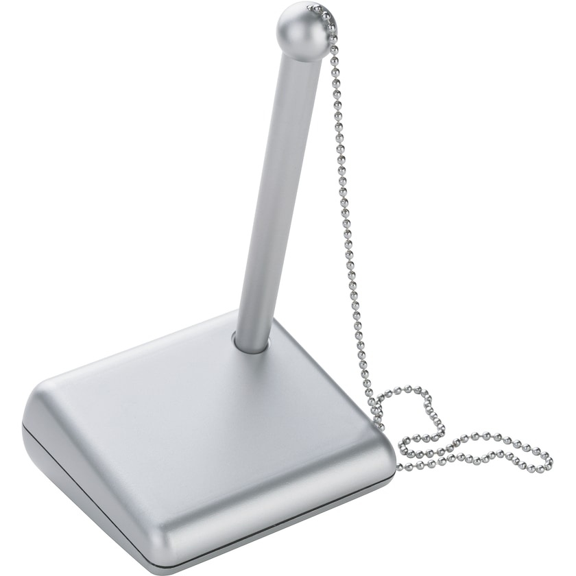 Klassisk kuglepen med kuglepensholder og 50 cm lang metalkæde. Passer perfekt til en ventesal eller receptionen. Bestil kuglepenne med metalkæder hos Axon Profil!