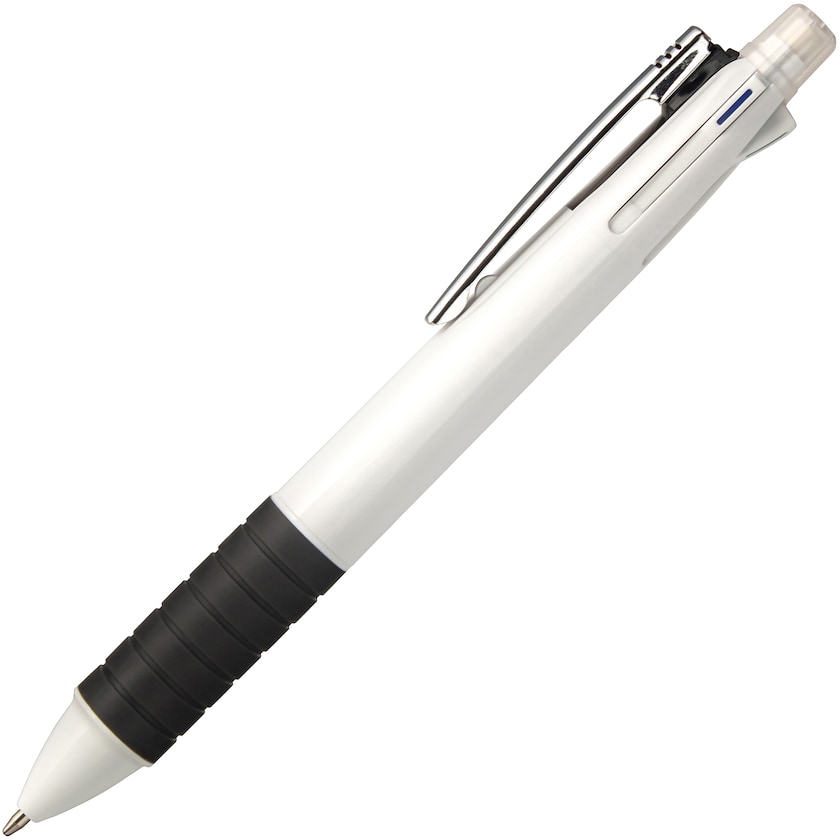 Flerfunktionspen med 4 forskellige blækfarver samt blyantstift. Blækfarverne er blå, sort, rød og grøn. Blyantstiften er 0,5 mm i tykkelse. Blyantstiften kan fyldes op ved behov. Øverst findes der et viskelæder.