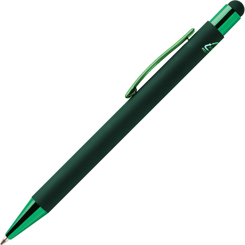Touchpen med lasergravering som fremtræder i metallic farve. Adelaide er fremstillet i genanvendt aluminium og har en lækker gummioverflade. Lasergraveringen fremtræder i en metallic farve som matcher kuglepennens krommede dele.
