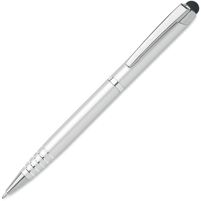 Eksklusiv touchpen i genanvendt aluminium. Pennen har drejemekanisme og blåt blæk. Vælg mellem tryk eller lasergravering.