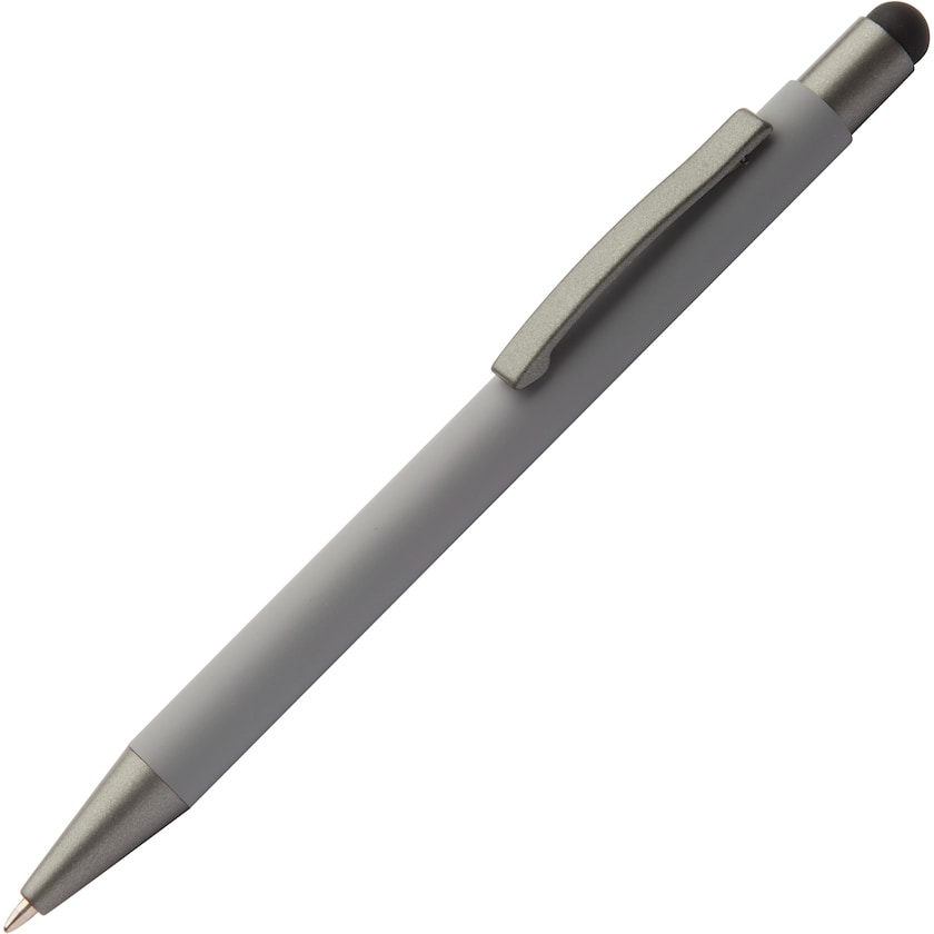Touchpen af aluminium med gummioverflade. Pga. den gummibehandlede overflade er kuglepennen meget lækker at skrive med. Mærkning lavet med lasergravering.