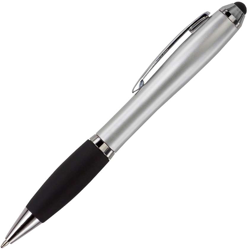 Prisvenlig kuglepen med touchfunktion og bekvemt greb af gummi. Kuglepennen har sort blæk.