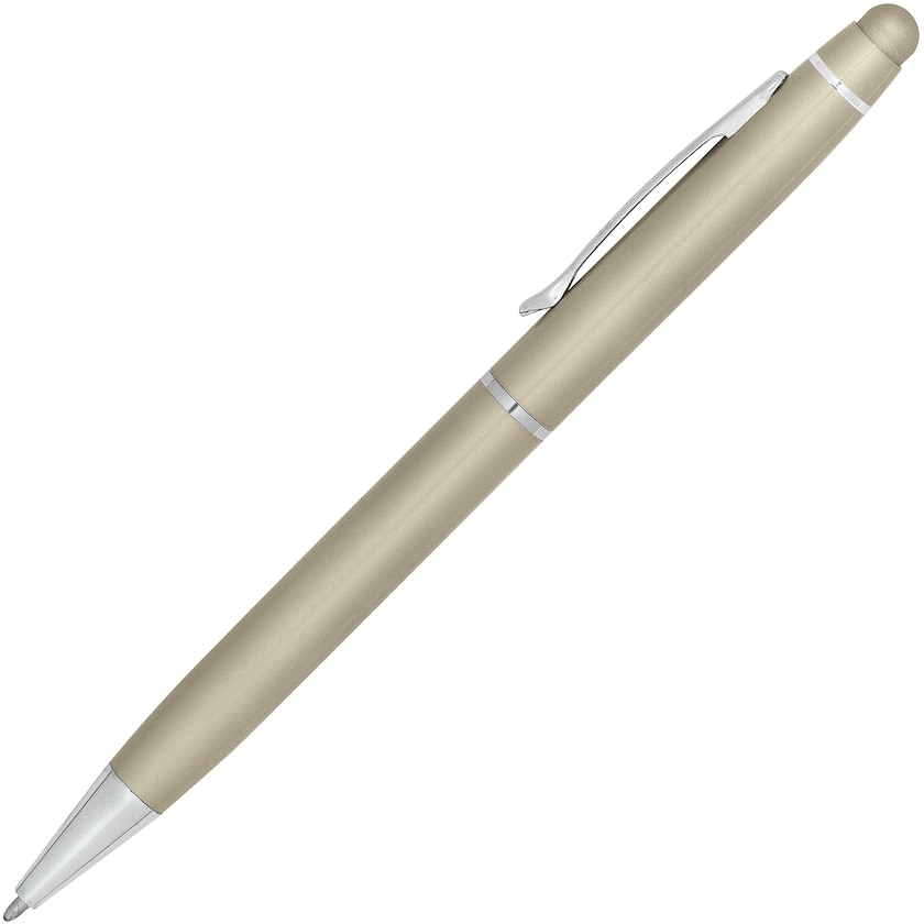 Elegant touchpen af metal. Pennen har blåt bæk og en diskret touchfunktion for oven. Mærkning laves med tryk eller lasergravering.