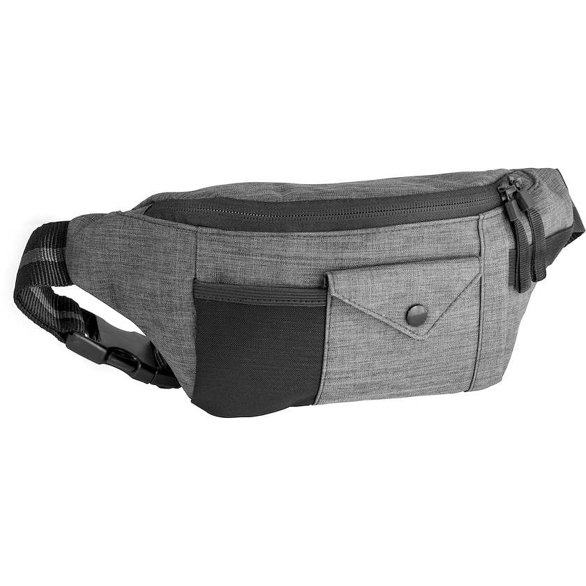Bæltetaske med mange forskellige lommer. Hovedrummet er forsynet med lynlås og indvendigt er der en netlomme. Foran er der to mindre lommer. På bæltetaskens bagside er der en opbevaringslomme til værdigenstande.