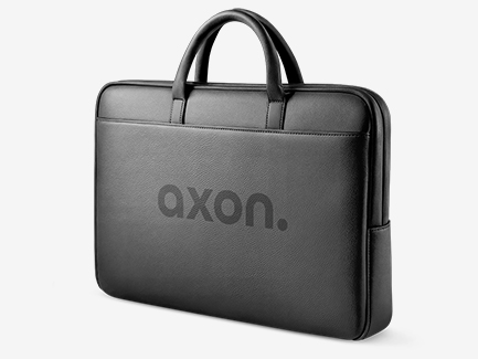 Axon har computertasker med logo, der passer til bærbare computere fra 14 tommer til 17 tommer. På hver enkelt produktside finder du information om, hvilken bærbar størrelse de er beregnet til.