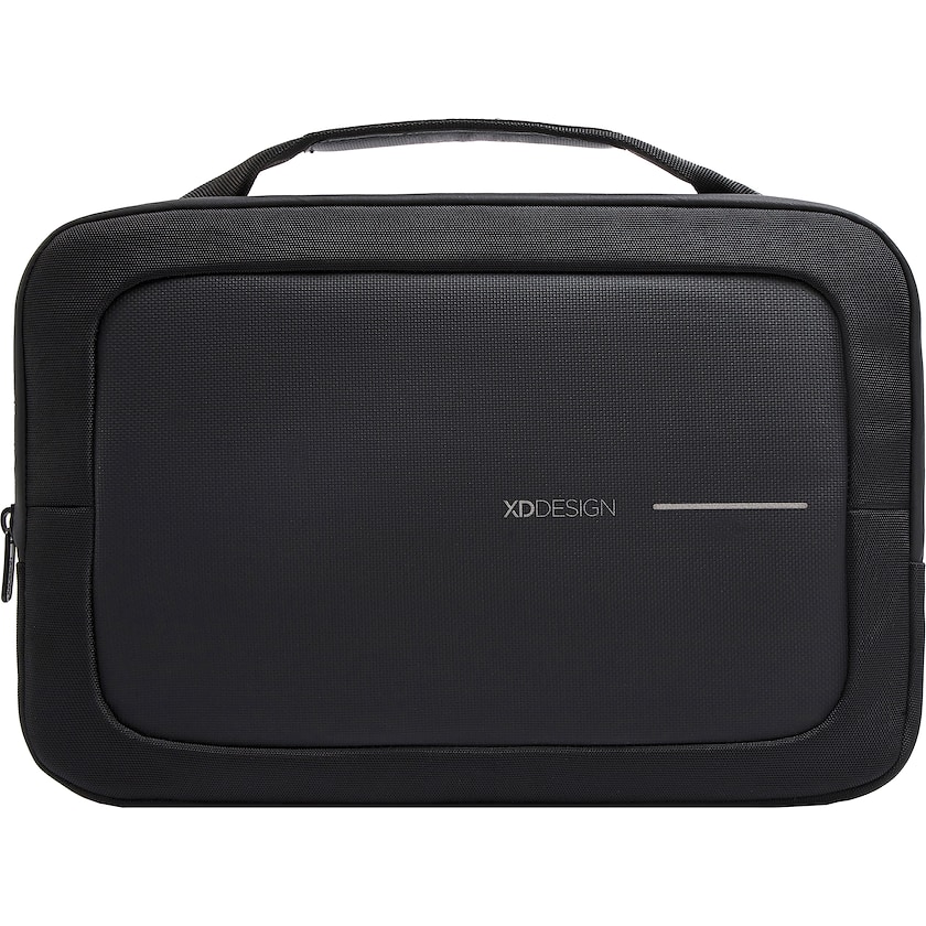 Computertaske fra XD Design med miljøvenligt stof. Tasken rummer en 14 tommers bærbar. Stoffet er fremstillet af miljøvenligt rPET og er vandafvisende. Inderforet er lavet af blød fleece.
