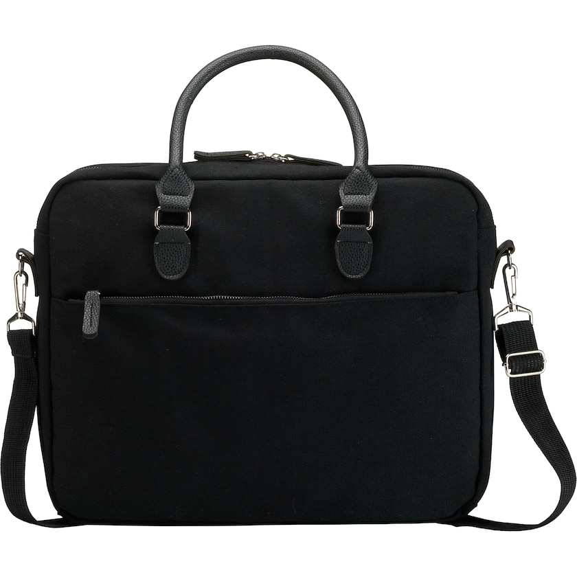 Computertaske i genanvendt bomuldscanvas. Indvendigt er der et polstret rum til en 15,6 tommers bærbar computer. Håndtagene er fremstillet af genanvendt polyurethan, og foret er af miljøvenligt rPET. En solid computertaske, der skåner miljøet. Kun 1-farvetryk er muligt.