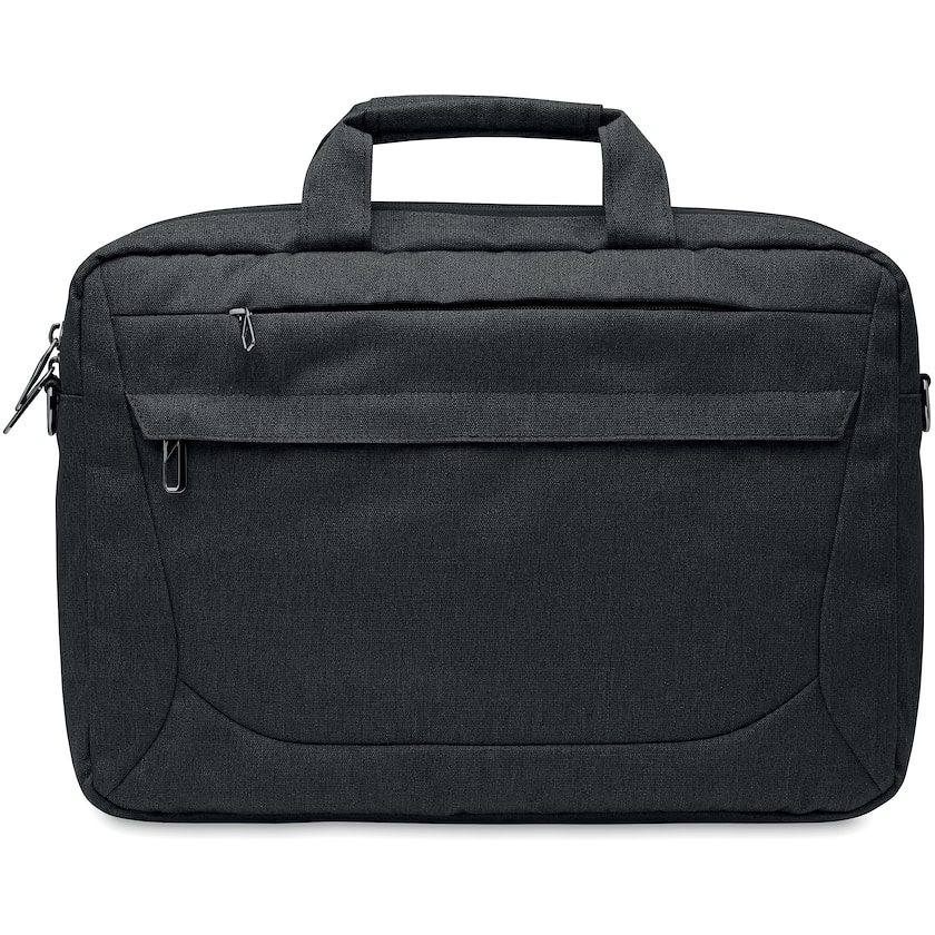 Miljøvenlig computertaske i god kvalitet. Tasken er fremstillet af RPET, dvs. genbrugspolyester, og kan rumme en 15 tommers bærbar. På bagsiden er der en rem som gør at tasken kan fæstnes på en trolley.