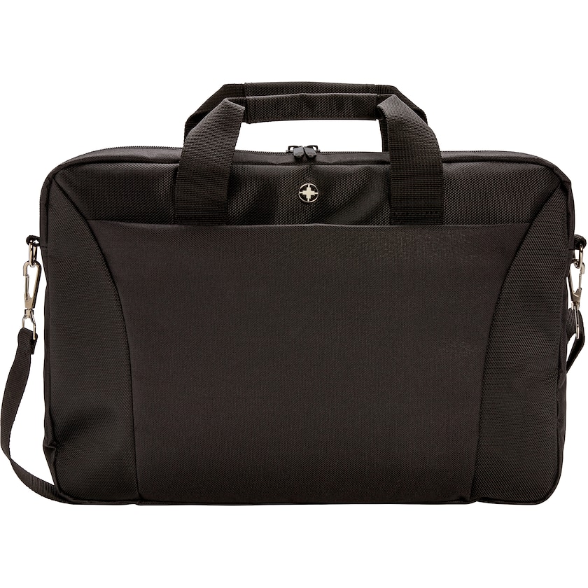 Computertaske fra Swiss Peak med rum til de fleste 15-tommers bærbare computere. Tasken har et specielt polstret rum til den bærbare computer, samt en separat lomme til en tablet. Derudover har tasken en lomme forsynet med lynlås til mindre tilbehør samt en justerbar og aftagelig skulderrem. Tasken er helt PVC-fri.