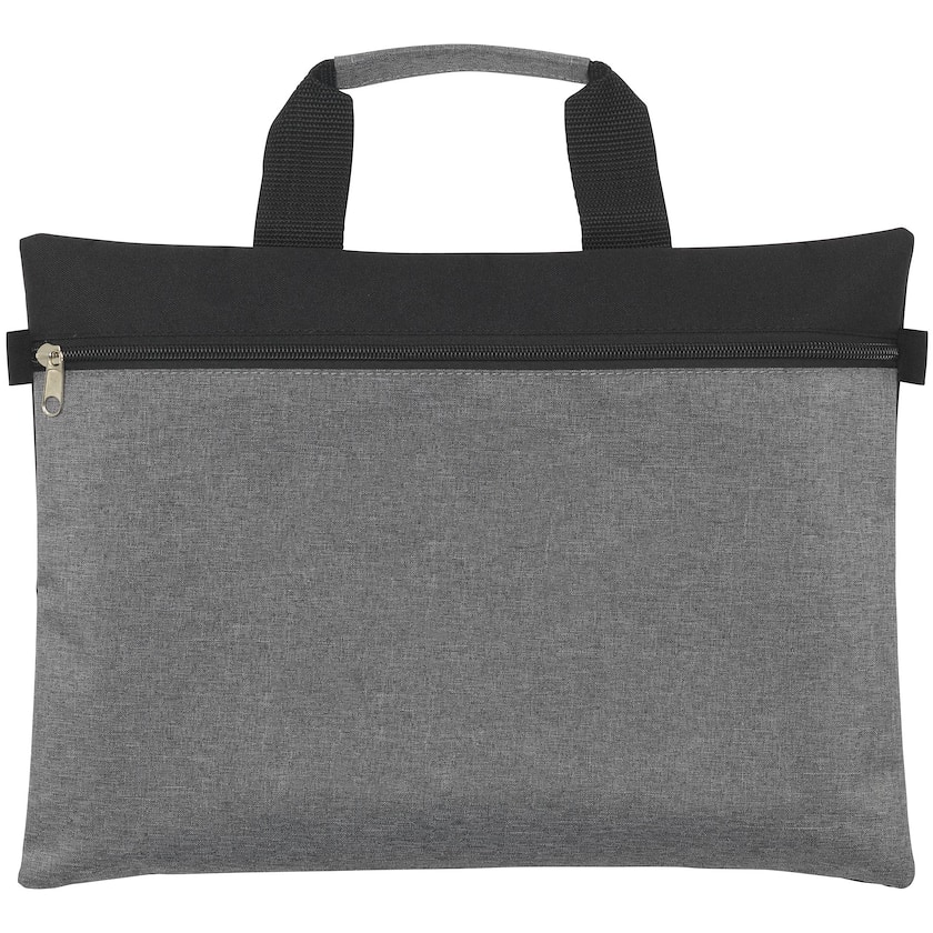 Rummelig dokumenttaske i grå og sort. Håndtaget er forstærket. Kun 1-trykfarve er mulig.