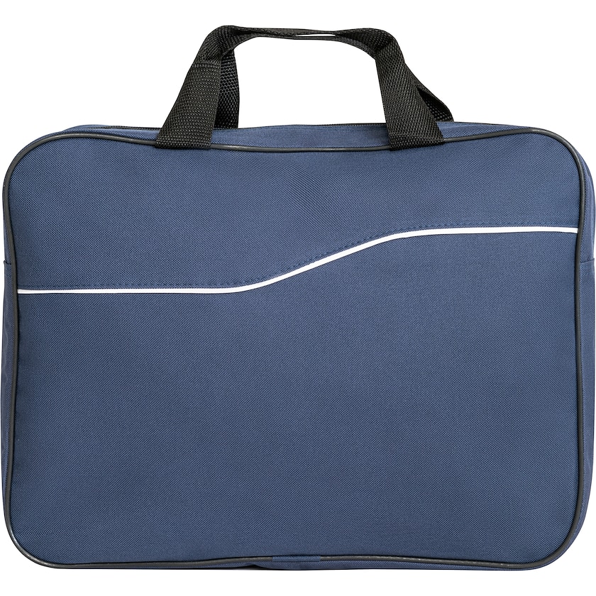 Dokumenttaske med korte håndtag til en attraktiv pris. Tasken har et hvidt bånd på forsiden.